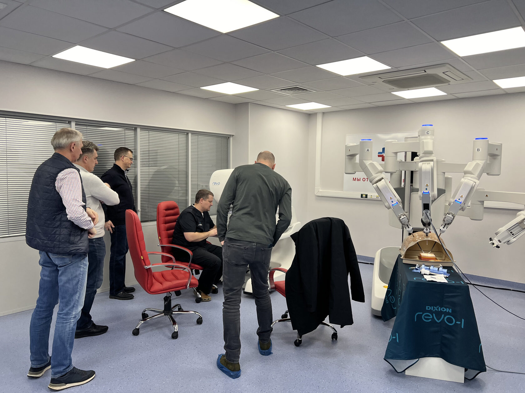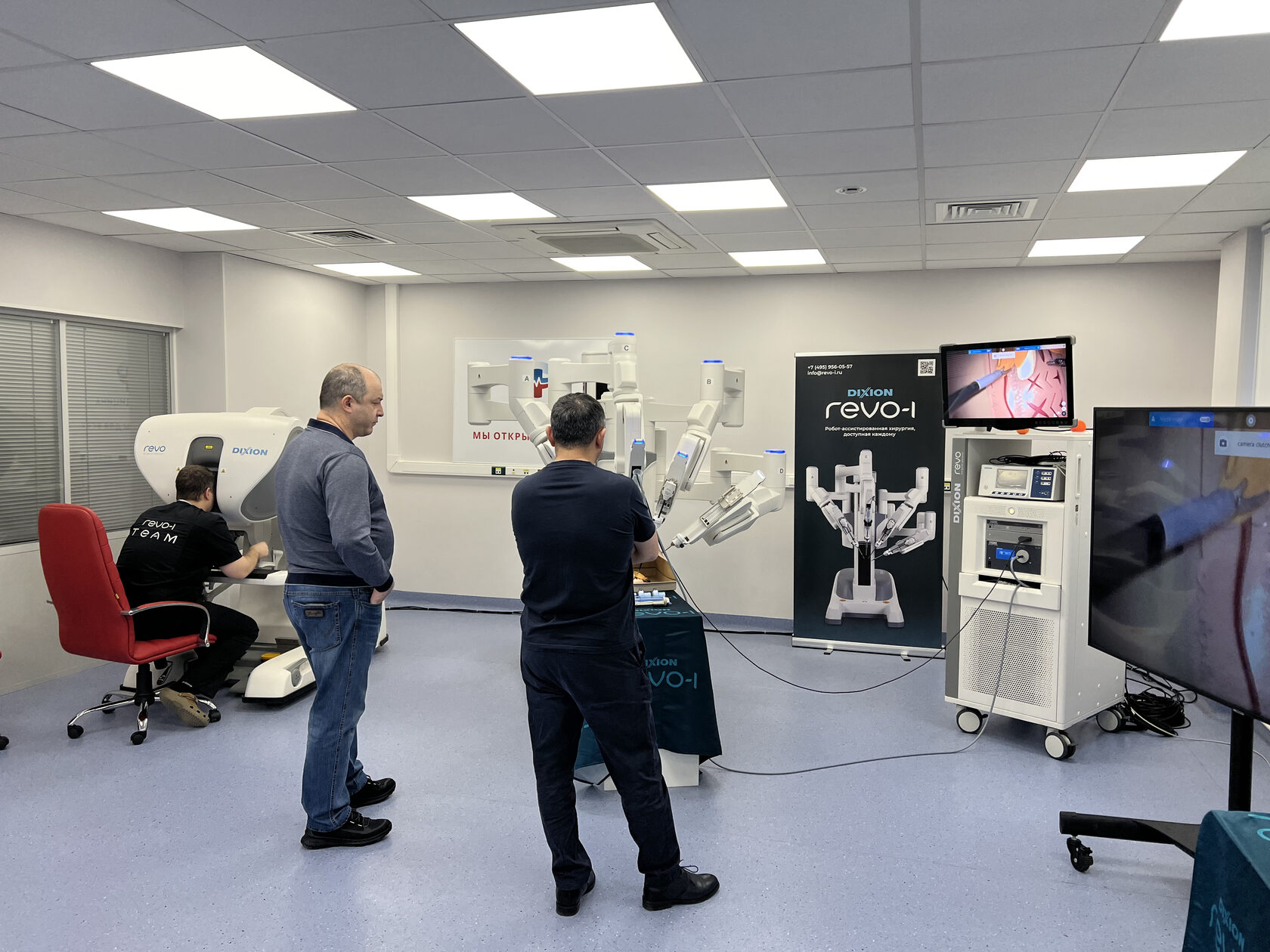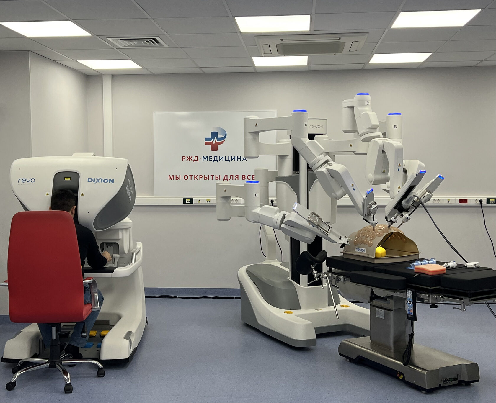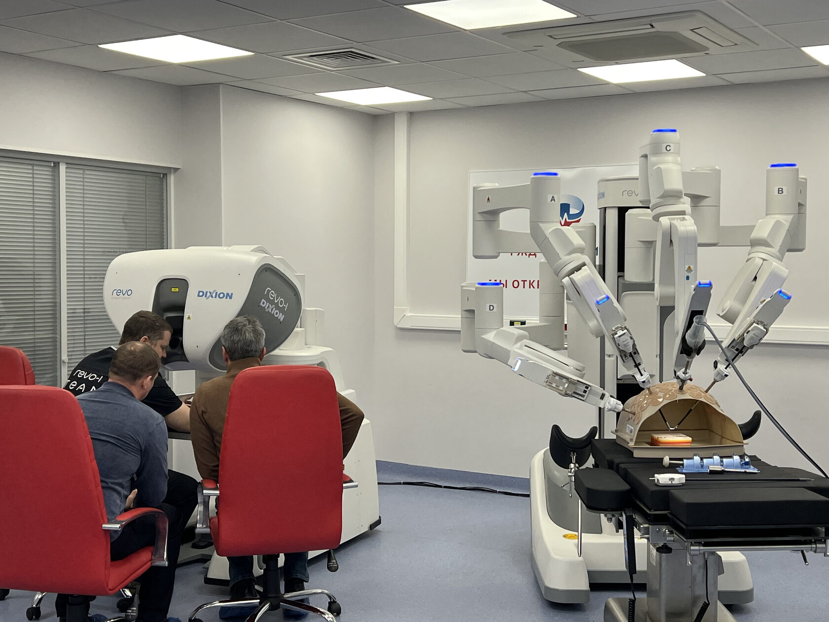 На базе Клинической больницы "РЖД-Медицина" им. Н. А. Семашко" был организован демонстрационный центр, где впервые в России была инсталлирована роботическая система Dixion Revo-i. Этот шоурум предоставил возможность сотрудникам более чем 60 крупных больниц и федеральных центров со всей страны ознакомиться с техническими характеристиками и преимуществами Revo-i, посидеть за консолью и выполнить интракорпоральные швы на манекене. Среди посетителей были как опытные консольные хирурги, так и специалисты, начинающие свой путь в роботической хирургии.